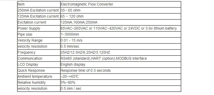 1,2,3、6、8,10、15、20、25、32、40、50、65、80、100、125、150、200、250、300、350、400、450、500、600、650,700、800、900、1000、1100,1200、1300,1400、1500,1600、1700,1800、2000、2200、2400、2600、2800、30004. Power Supply of Electromagnetic Flow ConverterPower supply :85VAC --- 265VAC or or 110VAC to 420VAC or 24VDC or 3.6v lithium battery5. Details show of the Electromagnetic Flow Converter